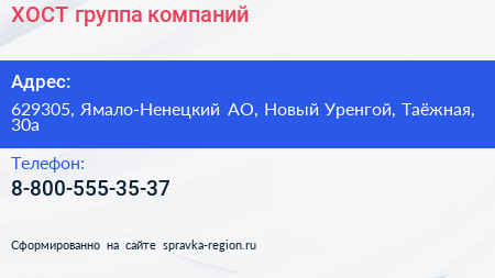 ХОСТ, группа компаний по адресу 629305, Ямало-Ненецкий АО, Новый Уренгой, Таёжная, 30а в дальнейшем Организация, размещена в следующих категориях: