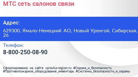 МТС, сеть салонов связи по адресу 629300, Ямало-Ненецкий АО, Новый Уренгой, Сибирская, 26 в дальнейшем Организация, размещена в следующих категориях: