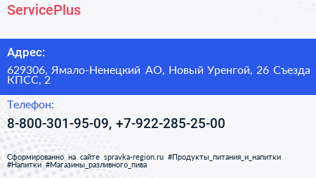ServicePlus по адресу 629306, Ямало-Ненецкий АО, Новый Уренгой, 26 Съезда КПСС, 2 в дальнейшем Организация, размещена в следующих категориях: