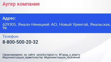 Аугер, компания по адресу 629305, Ямало-Ненецкий АО, Новый Уренгой, Ямальская, 9в в дальнейшем Организация, размещена в следующих категориях: