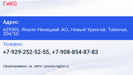 ГиКС по адресу 629305, Ямало-Ненецкий АО, Новый Уренгой, Таёжная, 204/10 в дальнейшем Организация, размещена в следующих категориях: