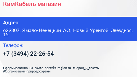 КамКабель, магазин по адресу 629307, Ямало-Ненецкий АО, Новый Уренгой, Звёздная, 15 в дальнейшем Организация, размещена в следующих категориях: