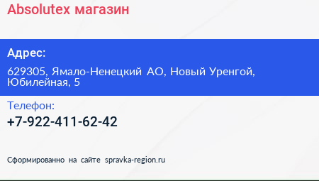 Absolutex, магазин по адресу 629305, Ямало-Ненецкий АО, Новый Уренгой, Юбилейная, 5 в дальнейшем Организация, размещена в следующих категориях: