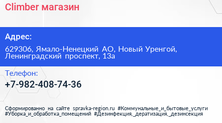 Climber, магазин по адресу 629306, Ямало-Ненецкий АО, Новый Уренгой, Ленинградский проспект, 13а в дальнейшем Организация, размещена в следующих категориях: