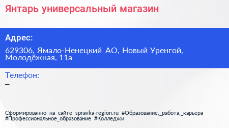 Янтарь, универсальный магазин по адресу 629306, Ямало-Ненецкий АО, Новый Уренгой, Молодёжная, 11а в дальнейшем Организация, размещена в следующих категориях: