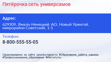 Пятёрочка, сеть универсамов по адресу 629309, Ямало-Ненецкий АО, Новый Уренгой, микрорайон Советский, 1-1 в дальнейшем Организация, размещена в следующих категориях: