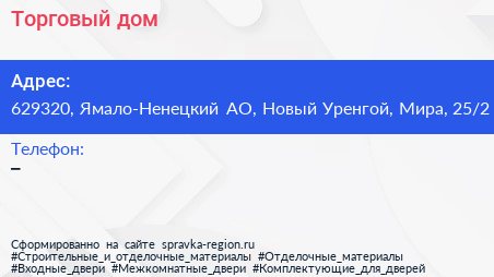 Торговый дом по адресу 629320, Ямало-Ненецкий АО, Новый Уренгой, Мира, 25/2 в дальнейшем Организация, размещена в следующих категориях: