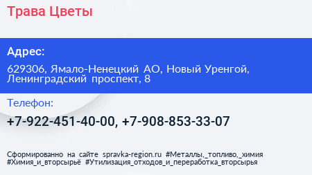 Трава & Цветы по адресу 629306, Ямало-Ненецкий АО, Новый Уренгой, Ленинградский проспект, 8 в дальнейшем Организация, размещена в следующих категориях: