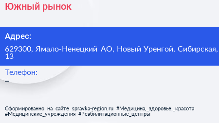 Южный, рынок по адресу 629300, Ямало-Ненецкий АО, Новый Уренгой, Сибирская, 13 в дальнейшем Организация, размещена в следующих категориях: