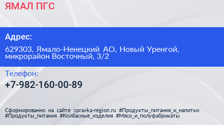ЯМАЛ-ПГС по адресу 629303, Ямало-Ненецкий АО, Новый Уренгой, микрорайон Восточный, 3/2 в дальнейшем Организация, размещена в следующих категориях: