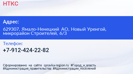 НТКС по адресу 629307, Ямало-Ненецкий АО, Новый Уренгой, микрорайон Строителей, 6/3 в дальнейшем Организация, размещена в следующих категориях: