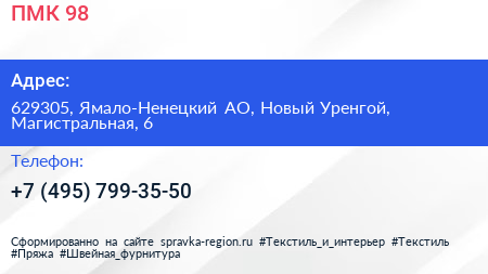 ПМК-98 по адресу 629305, Ямало-Ненецкий АО, Новый Уренгой, Магистральная, 6 в дальнейшем Организация, размещена в следующих категориях: