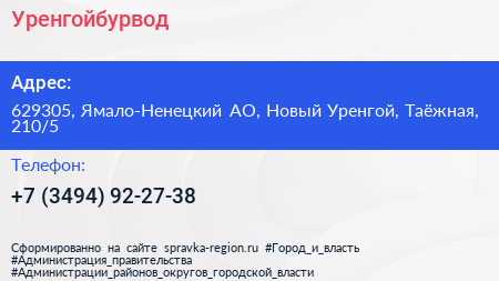 Уренгойбурвод по адресу 629305, Ямало-Ненецкий АО, Новый Уренгой, Таёжная, 210/5 в дальнейшем Организация, размещена в следующих категориях: