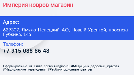 Империя ковров, магазин по адресу 629307, Ямало-Ненецкий АО, Новый Уренгой, проспект Губкина, 14а в дальнейшем Организация, размещена в следующих категориях: