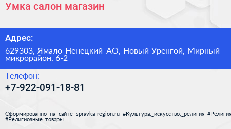 Умка, салон-магазин по адресу 629303, Ямало-Ненецкий АО, Новый Уренгой, Мирный микрорайон, 6-2 в дальнейшем Организация, размещена в следующих категориях: