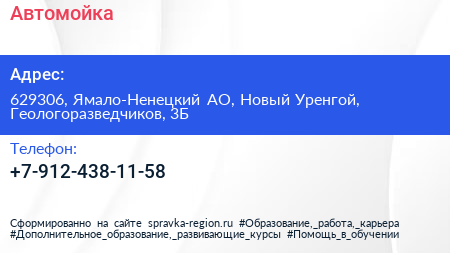 Автомойка по адресу 629306, Ямало-Ненецкий АО, Новый Уренгой, Геологоразведчиков, 3Б в дальнейшем Организация, размещена в следующих категориях: