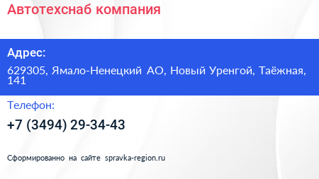 Автотехснаб, компания по адресу 629305, Ямало-Ненецкий АО, Новый Уренгой, Таёжная, 141 в дальнейшем Организация, размещена в следующих категориях: