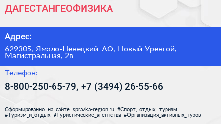 ДАГЕСТАНГЕОФИЗИКА по адресу 629305, Ямало-Ненецкий АО, Новый Уренгой, Магистральная, 2в в дальнейшем Организация, размещена в следующих категориях: