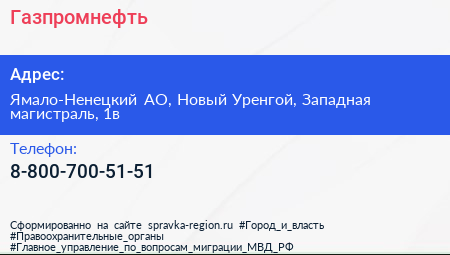 Газпромнефть по адресу Ямало-Ненецкий АО, Новый Уренгой, Западная магистраль, 1в в дальнейшем Организация, размещена в следующих категориях: