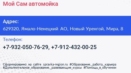 Мой Сам, автомойка по адресу 629320, Ямало-Ненецкий АО, Новый Уренгой, Мира, 8 в дальнейшем Организация, размещена в следующих категориях: