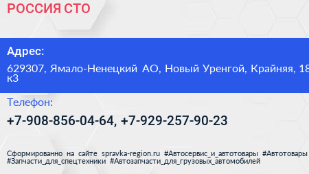 РОССИЯ, СТО по адресу 629307, Ямало-Ненецкий АО, Новый Уренгой, Крайняя, 18 к3 в дальнейшем Организация, размещена в следующих категориях: