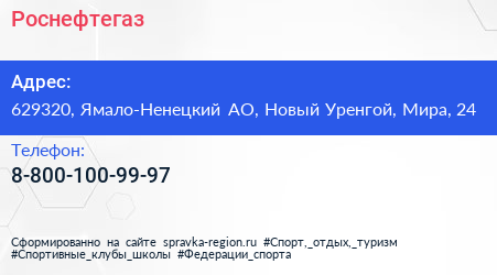 Роснефтегаз по адресу 629320, Ямало-Ненецкий АО, Новый Уренгой, Мира, 24 в дальнейшем Организация, размещена в следующих категориях: