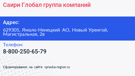 Саири Глобал, группа компаний по адресу 629305, Ямало-Ненецкий АО, Новый Уренгой, Магистральная, 2в в дальнейшем Организация, размещена в следующих категориях: