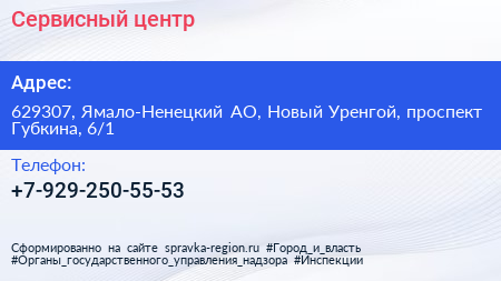 Сервисный центр по адресу 629307, Ямало-Ненецкий АО, Новый Уренгой, проспект Губкина, 6/1 в дальнейшем Организация, размещена в следующих категориях: