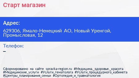Старт, магазин по адресу 629306, Ямало-Ненецкий АО, Новый Уренгой, Промысловая, 12 в дальнейшем Организация, размещена в следующих категориях: