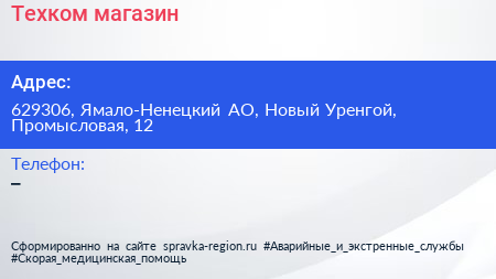 Техком, магазин по адресу 629306, Ямало-Ненецкий АО, Новый Уренгой, Промысловая, 12 в дальнейшем Организация, размещена в следующих категориях: