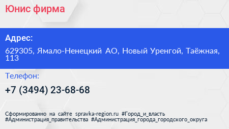 Юнис, фирма по адресу 629305, Ямало-Ненецкий АО, Новый Уренгой, Таёжная, 113 в дальнейшем Организация, размещена в следующих категориях: