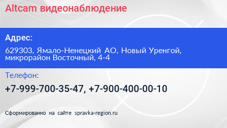Altcam, видеонаблюдение по адресу 629303, Ямало-Ненецкий АО, Новый Уренгой, микрорайон Восточный, 4-4 в дальнейшем Организация, размещена в следующих категориях: