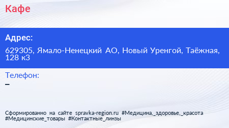 Кафе по адресу 629305, Ямало-Ненецкий АО, Новый Уренгой, Таёжная, 128 к3 в дальнейшем Организация, размещена в следующих категориях:
