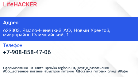 LifeHACKER по адресу 629303, Ямало-Ненецкий АО, Новый Уренгой, микрорайон Олимпийский, 1 в дальнейшем Организация, размещена в следующих категориях:
