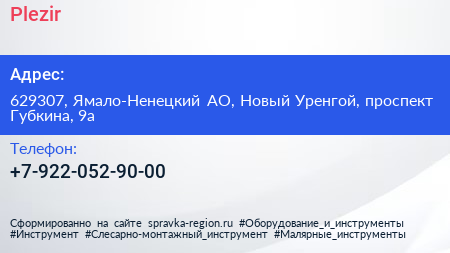 Plezir по адресу 629307, Ямало-Ненецкий АО, Новый Уренгой, проспект Губкина, 9а в дальнейшем Организация, размещена в следующих категориях: