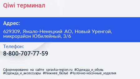 Qiwi, терминал по адресу 629309, Ямало-Ненецкий АО, Новый Уренгой, микрорайон Юбилейный, 3/6 в дальнейшем Организация, размещена в следующих категориях: