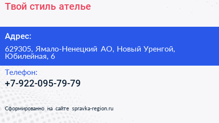 Твой стиль, ателье по адресу 629305, Ямало-Ненецкий АО, Новый Уренгой, Юбилейная, 6 в дальнейшем Организация, размещена в следующих категориях:
