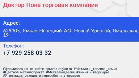 Доктор Нона, торговая компания по адресу 629305, Ямало-Ненецкий АО, Новый Уренгой, Ямальская, 19 в дальнейшем Организация, размещена в следующих категориях: