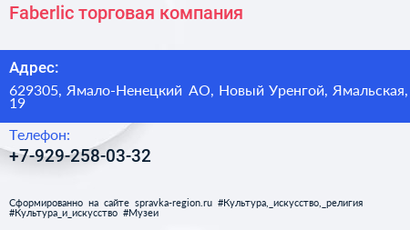 Faberlic, торговая компания по адресу 629305, Ямало-Ненецкий АО, Новый Уренгой, Ямальская, 19 в дальнейшем Организация, размещена в следующих категориях: