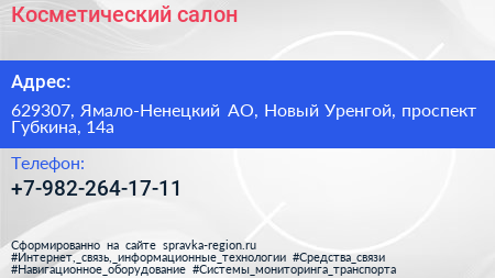 Косметический салон по адресу 629307, Ямало-Ненецкий АО, Новый Уренгой, проспект Губкина, 14а в дальнейшем Организация, размещена в следующих категориях: