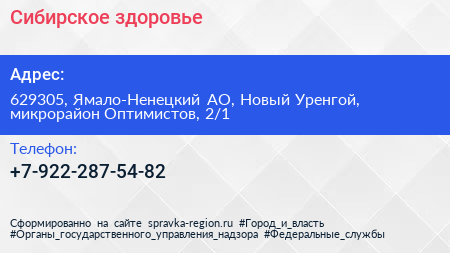 Сибирское здоровье по адресу 629305, Ямало-Ненецкий АО, Новый Уренгой, микрорайон Оптимистов, 2/1 в дальнейшем Организация, размещена в следующих категориях: