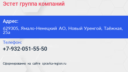Эстет, группа компаний по адресу 629305, Ямало-Ненецкий АО, Новый Уренгой, Таёжная, 25а в дальнейшем Организация, размещена в следующих категориях: