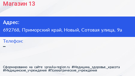Магазин №13 по адресу 692768, Приморский край, Новый, Сотовая улица, 9а в дальнейшем Организация, размещена в следующих категориях: