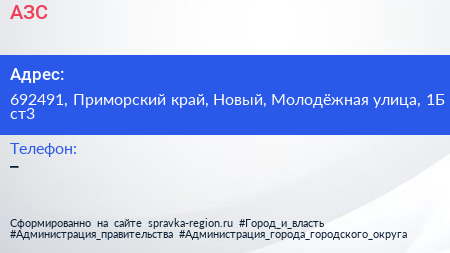 АЗС по адресу 692491, Приморский край, Новый, Молодёжная улица, 1Б ст3 в дальнейшем Организация, размещена в следующих категориях: