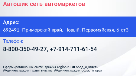 Автошик, сеть автомаркетов по адресу 692491, Приморский край, Новый, Первомайская, 6 ст3 в дальнейшем Организация, размещена в следующих категориях: