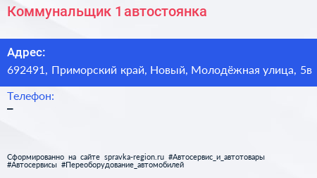 Коммунальщик-1, автостоянка по адресу 692491, Приморский край, Новый, Молодёжная улица, 5в в дальнейшем Организация, размещена в следующих категориях: