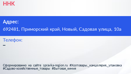 ННК по адресу 692481, Приморский край, Новый, Садовая улица, 10а в дальнейшем Организация, размещена в следующих категориях: