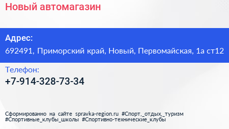 Новый, автомагазин по адресу 692491, Приморский край, Новый, Первомайская, 1а ст12 в дальнейшем Организация, размещена в следующих категориях: