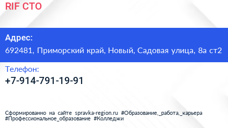 RIF, СТО по адресу 692481, Приморский край, Новый, Садовая улица, 8а ст2 в дальнейшем Организация, размещена в следующих категориях: