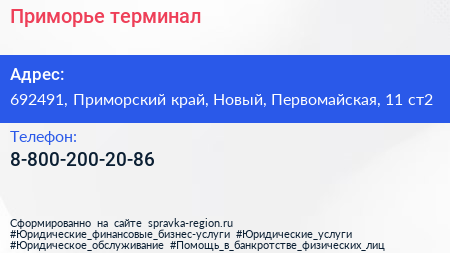 Приморье, терминал по адресу 692491, Приморский край, Новый, Первомайская, 11 ст2 в дальнейшем Организация, размещена в следующих категориях: